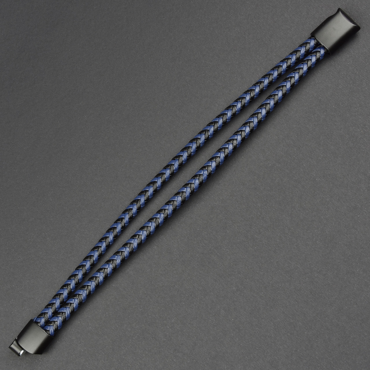 Чоловічий браслет чорний екошкіра із синьою вставкою Stainless Steel довжина 21 см ширина 12 мм