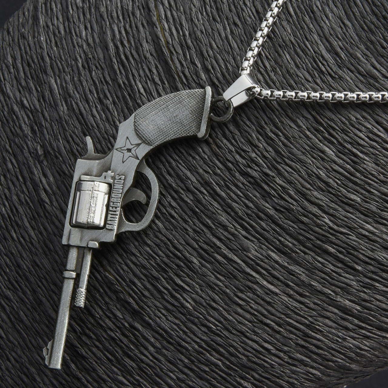 Ланцюг із кулоном револьвера сріблястого кольору Stainless Steel розмір 70х35 мм розмір ланцюга 70 см 3 мм