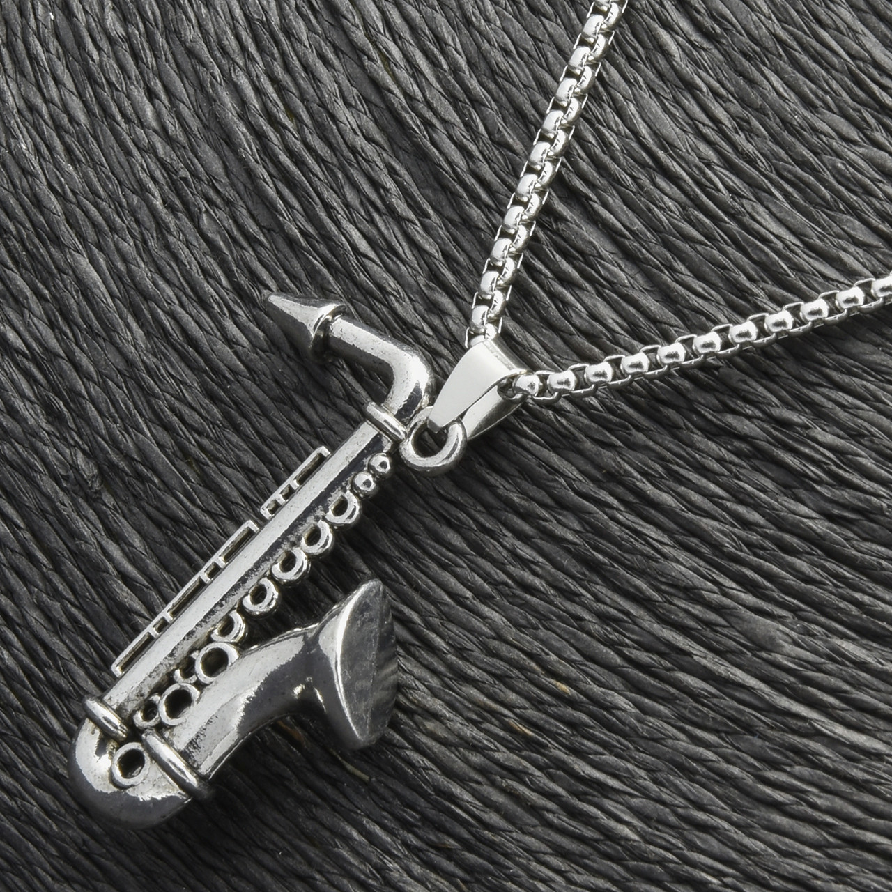 Ланцюг із кулоном саксофон сріблястого кольору Stainless Steel розмір 45х35 мм розмір ланцюга 70 см 3 мм