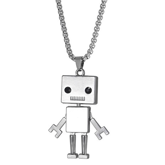 Ланцюг із кулоном робот зі стразами сріблястого кольору Stainless Steel розмір 50х20 мм розмір ланцюга 70 см 3 мм