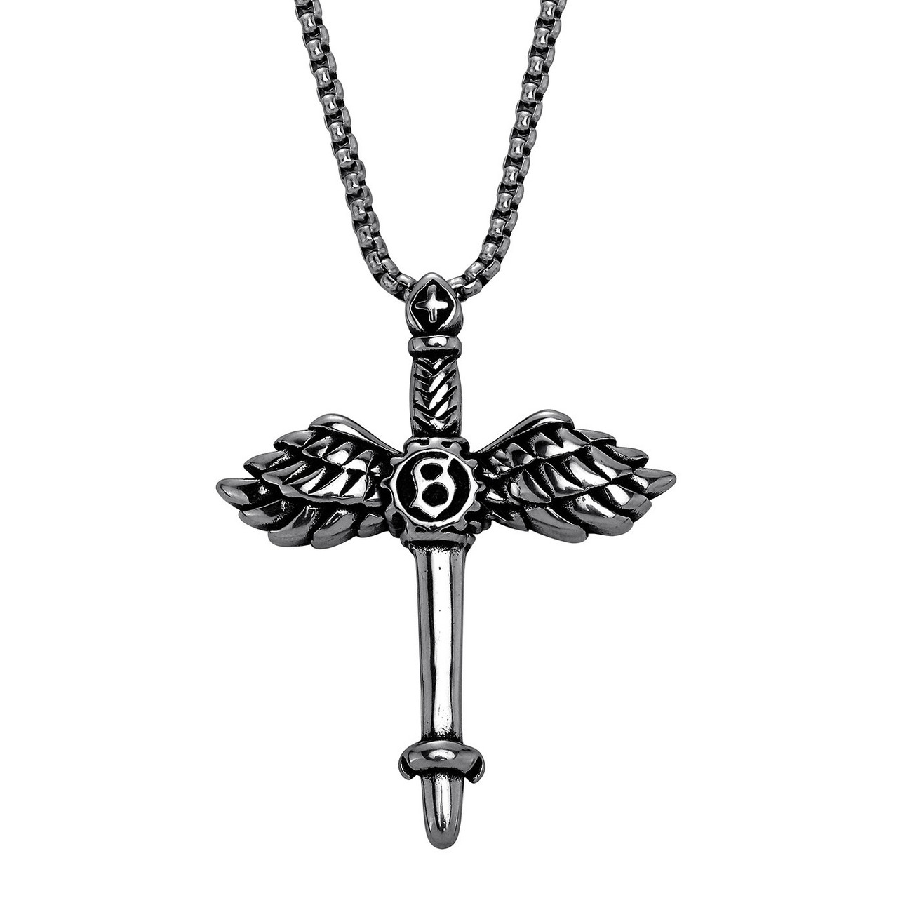 Ланцюг із кулоном кинджал із крилами сріблястого кольору Stainless Steel розмір 60х45 мм розмір ланцюга 70 см 3 мм