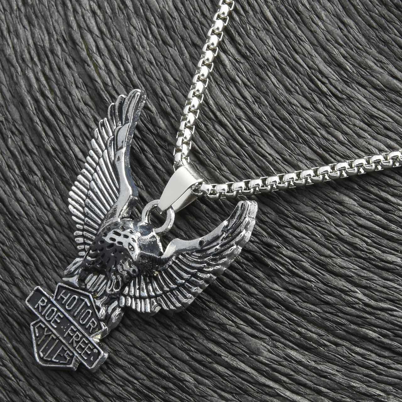 Ланцюг із кулоном орел із табличкою сріблястого кольору Stainless Steel розмір 45х35 мм розмір ланцюга 70 см 3 мм